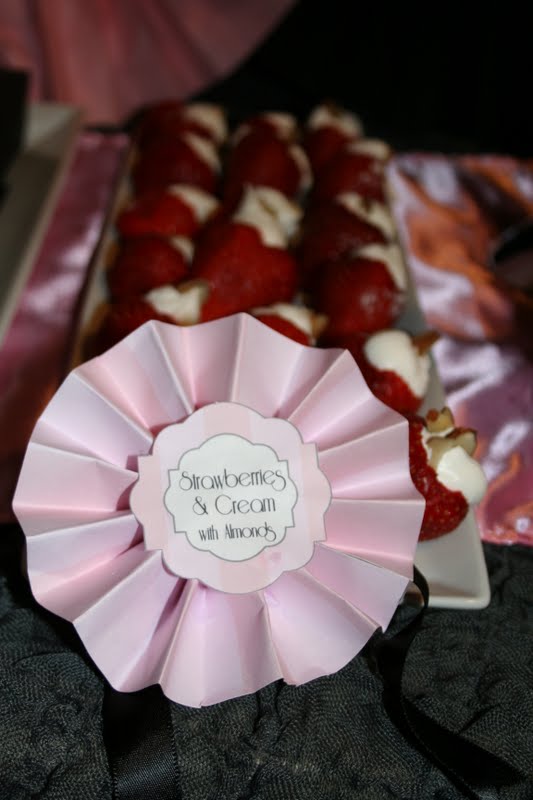 Dessert table 1 - strawberry & chocolate cake pops and strawberries & cream |